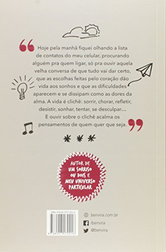 Em seu terceiro livro, Frederico Elboni propõe ao leitor explorar seus sentimentos mais profundos, falando sobre temas que muitas pessoas não entenderiam. Saudade de pessoas que já se foram, amores perdidos, dilemas da vida adulta, todos esses temas viram crônicas nas mãos do jovem autor de ‘Um sorriso ou dois’ e ‘Meu universo particular’.